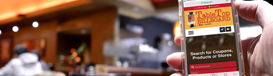 Advertisers in the Tabletop Billboard In-Restaurant Advertising system automatically receive a free store setup and free credits to update their own store and add coupons, products, and their company information. This is included in the purchase of any In-Restaurant advertising and will continue to be free as long as In-Restaurant advertising continues.